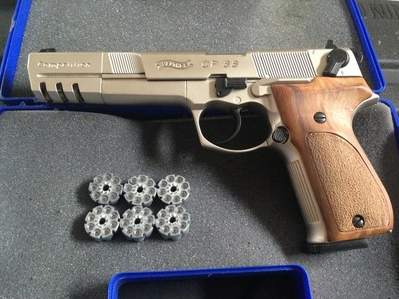 Waffen habe ich in der vernickelten Version mit Griffschalen aus Holz gekauft. Die Waffen sind sowohl optisch als auch von der Verarbeitung, der Haptik und der Genauigkeit ohne. Das 8-schüssige Trommelmagazin läßt sich blitzschnell austauschen. In Verbindung mit dem Power-Spannsystem für die CO² Kapseln wird eine sichere und schnelle Schußbereitschaft gewährleistet.